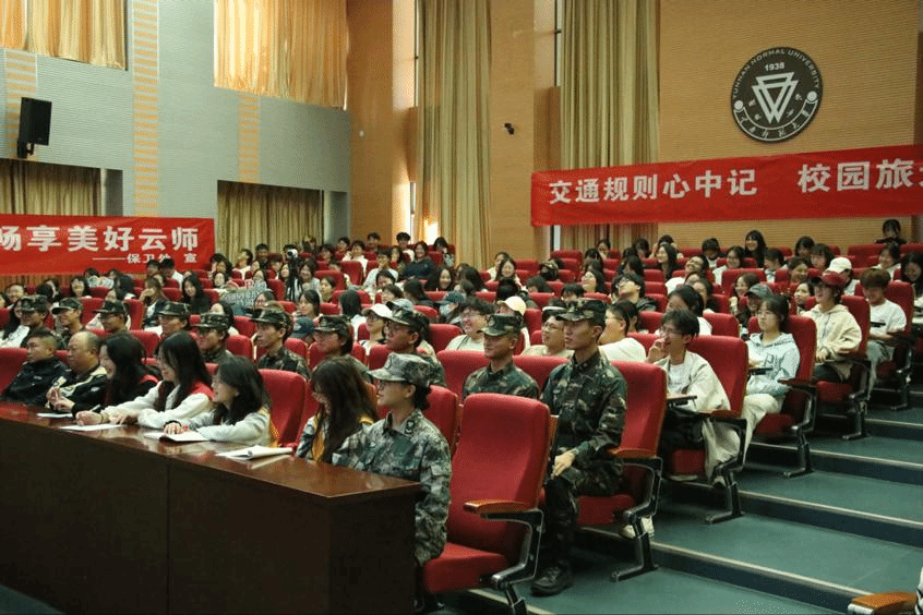 为进一步加强校园交通安全管理,10月24日下午,保卫处以“平安云师 和谐交通”为主题组织开展交通安全宣传培训活动。保卫处副处长顾世辉、昆明市公安局交通警察支队五大队民警皮序东、王磊,学校平安校园志愿服务大队、安保公司人员以及学生代表参加了此次活动。活动分室内讲座和室外培训两个阶段进行。