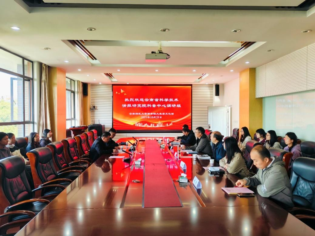 10月29日,云南省科学技术情报研究院调研组到数学学院调研西南联大数学文化馆省级科普基地(以下简称“科普基地”),云南省科学技术情报研究院科普中心研究员武卫、助理研究员马光逵,科技处副处长罗毅、数学学院副院长兼科普基地负责人王天志、科普基地成员及科普志愿者代参加调研座谈会。数学学院党委书记王世波主持会议。