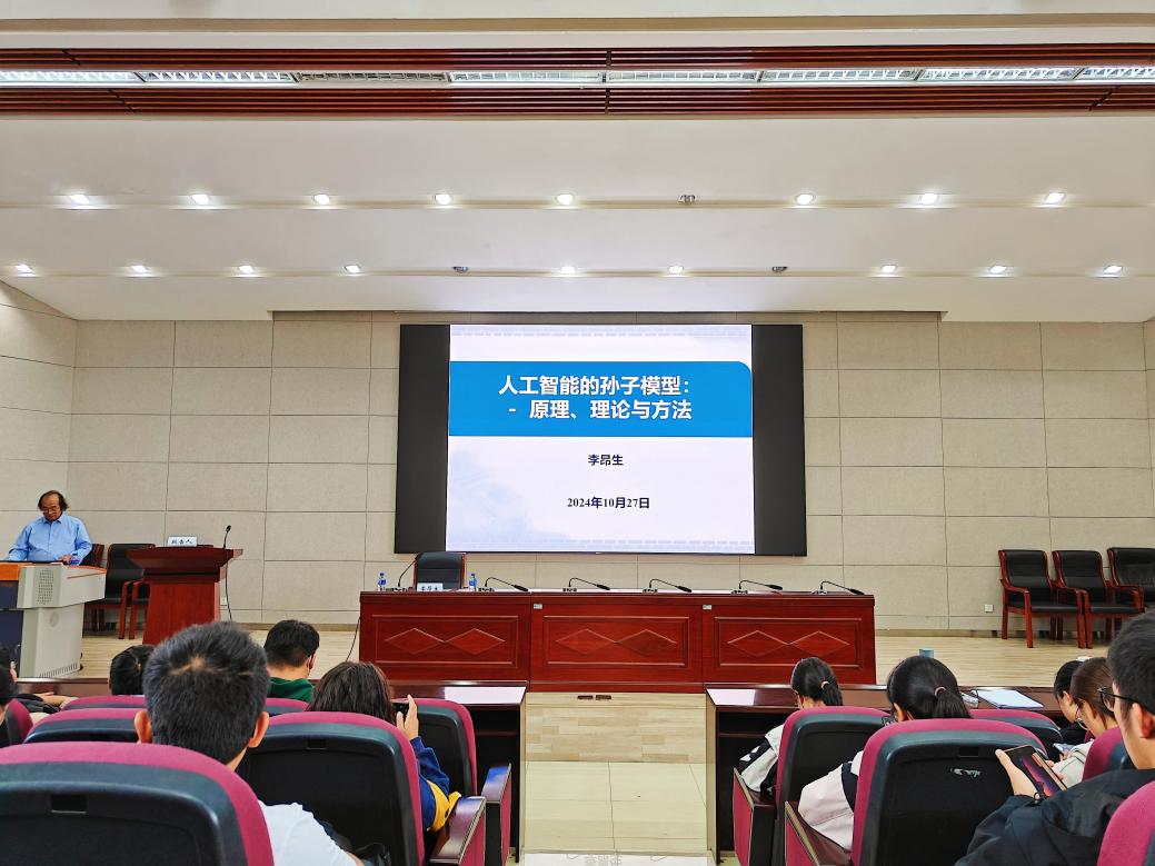 10月27日,北京航空航天大学教授李昂生应邀在数学学院报告厅作题为“人工智能的孙子模型:原理、理论与方法”的武之讲坛专题讲座,数学学院院长刘祥清主持讲座,学院300余名师生代表参加。