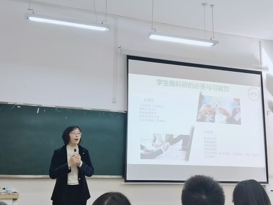 王晓芬教授首先带同学们厘清了“何为科研”“何为项目”两个基本问题,阐释了学生做科研的必要性与可能性。她重点向同学们讲解了科研的具体步骤与申报书的具体内容和撰写要求,带同学们从研究目标与内容、项目创新点、实施方案和可行性分析、研究思路、研究方法、预期成果等方面进行了细致的分析,帮助与会同学更加全面的认识科研。