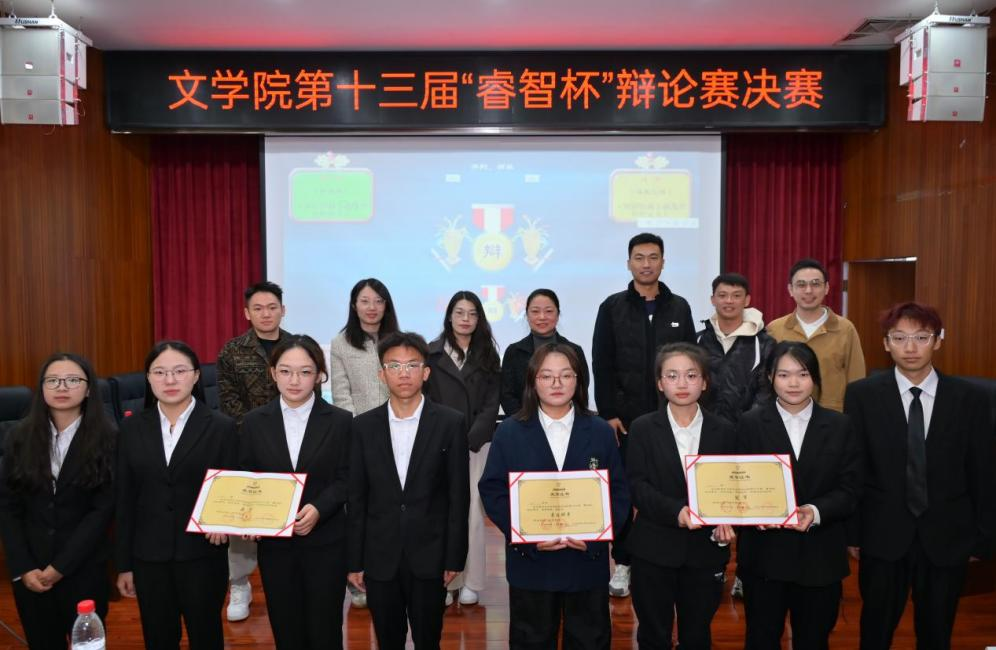 11月16日,文学院举行第十三届“睿智杯”辩论赛决赛。文学院副院长何颖、生科学院团委书记郭海业、体育学院团委书记高宁,文学院辅导员王英健、杨慧芹、仲慧、周昱辰担任评委。