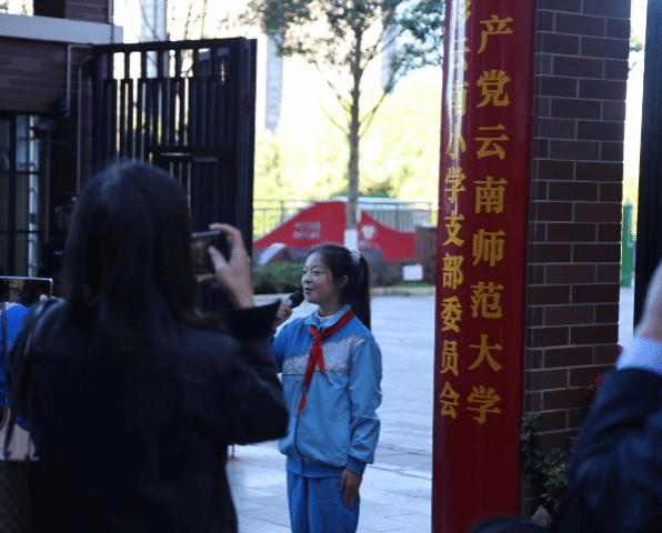 11月11日上午,跟岗领导、老师如约而至。师大附属七彩云南小学书记、校长彭文冲代表学校欢迎跟岗校长的到来,校长助理张萧洋就一周的跟岗研修计划做介绍说明。老师们在小讲解员带领下参观了学校校园、参加了主题升旗仪式及“观呈贡新貌 燃时代薪火”主题党日活动。