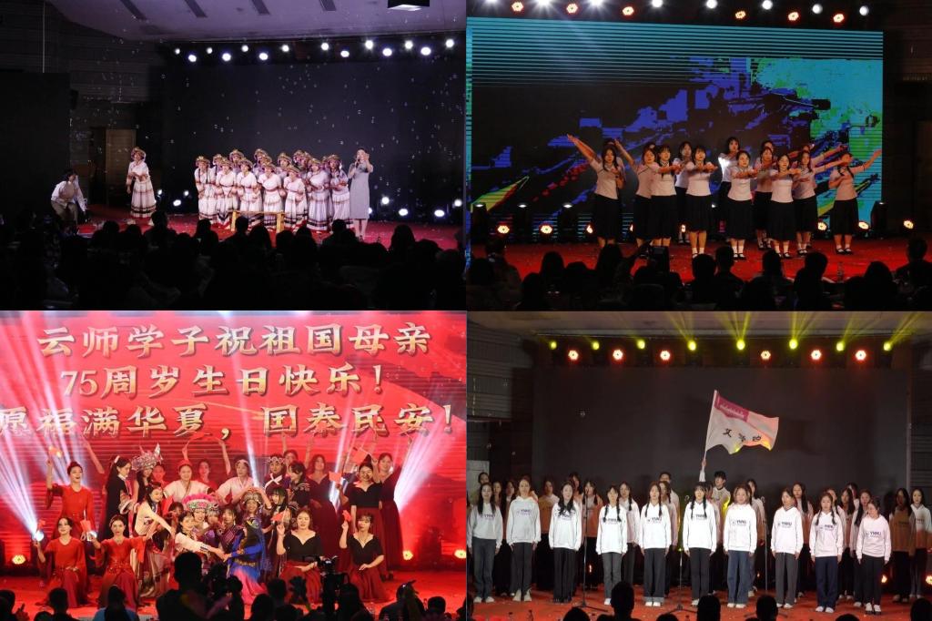 第三篇章是“七十五载·经典传承”。情景剧《深山里的女高》讲述了张桂梅校长引领深山女孩们求学逐梦的故事;情景剧《我有一束光》讲述了革命先烈萧楚女的故事;《盛世耀中华 同心向党恩》以舞蹈形式祝愿伟大祖国繁荣昌盛。最后,文学院研究生会全体成员齐唱《西南联大校歌》。