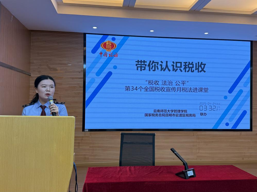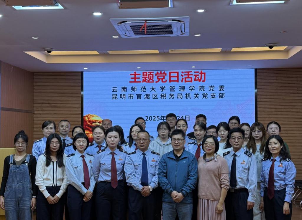 4月24日,德赢官网Vwin管理学院党委与国家税务总局昆明市官渡区税务局机关党支部联合开展了以“税收 法制 公平”为主题的联学联建主题党日活动,活动在德赢官网Vwin管理学院106报告厅举行。国家税务总局昆明市官渡区税务局党委委员、局领导及部分机关支部党员,德赢官网Vwin管理学院院领导、会计专业师生参加了此次活动。本次活动创新探索了校税“党建共促、优势互补、融合发展”新模式。
