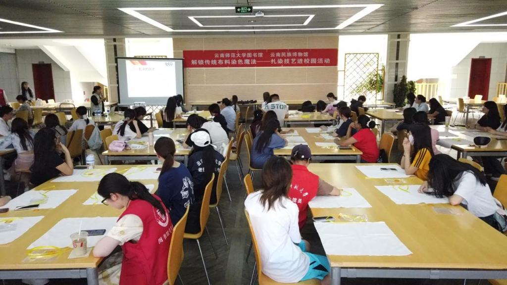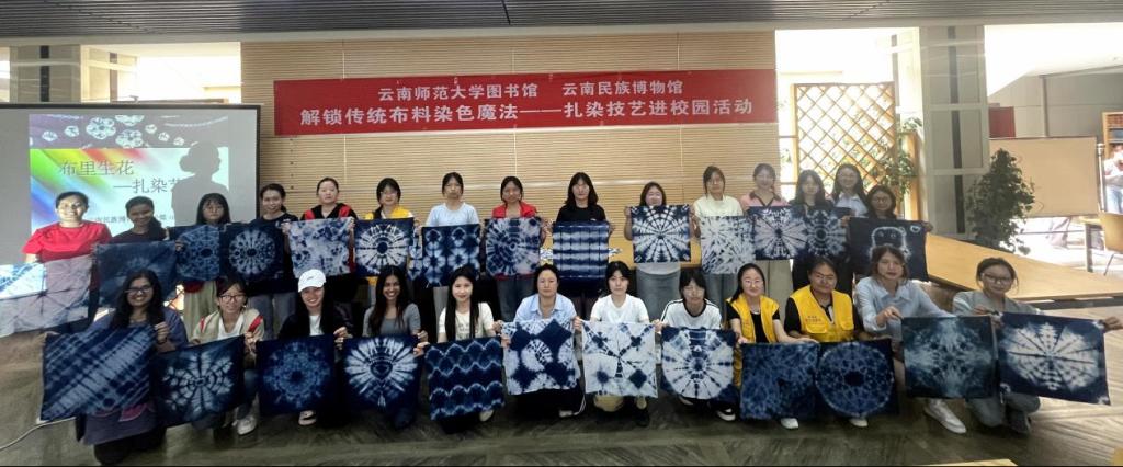 5月8日,德赢官网图书馆联合云南民族博物馆举办“解锁传统布料染色魔法——扎染技艺进校园活动”,150余名师生现场学习体验,感受云南少数民族非遗技艺的魅力。