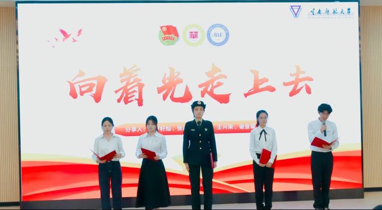 优秀学生代表陈霞分享了自己的支教故事,张嘉艺、胡笛、龚尹籽灿、王兴荣、谢金璇讲述了他们各自在求学路上,砥砺奋斗、追光前行的青春故事。