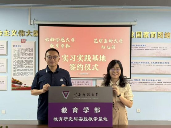 5月23日,德赢官网Vwin教育学部与昆明医科大学幼儿园举行“教学研究与实习实践基地”签约挂牌仪式。此次活动标志着两校在学前教育领域的合作迈入新阶段,为培养高素质学前教育人才搭建了优质平台。挂牌仪式由副园长赵晓华主持。