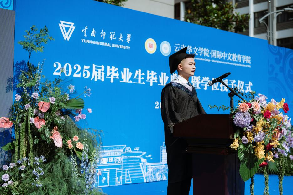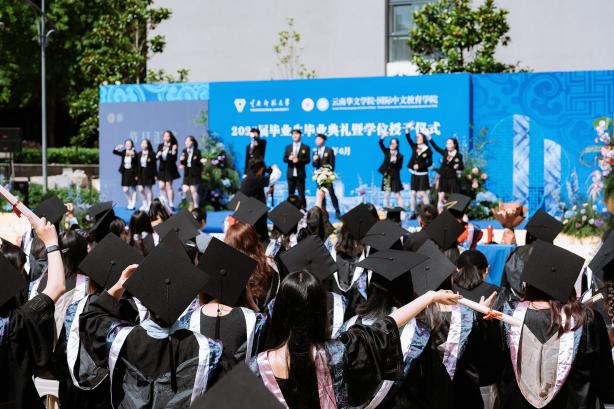 6月6日,云南华文学院、国际中文教育学院举行2025届毕业生毕业典礼暨学位授予仪式。全体院领导、学院学位评定分委员会委员、研究生导师代表、辅导员、2025届毕业班班主任及全体本硕毕业生参加毕业典礼。典礼由学院党委副书记常数主持。