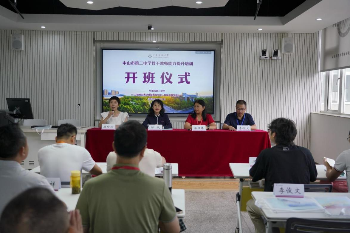 6月13日,由德赢官网继续教育学院(教师发展学院)主办的中山市第二中学骨干教师能力提升培训班在德赢官网一二•一西南联大校区开班。中山市第二中学党委书记梁红妹、副校长李俊文,继续教育学院党委书记邹飒以及49名中山市第二中学骨干教师出席开班仪式。
