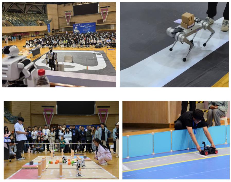大赛设创新赛、应用赛、竞技赛、挑战赛四个大类赛道,涵盖人工智能创新赛、机器人创新赛、智能家电创新赛、智能文化创意创新赛、Aelos机器人任务挑战赛(树莓派版)、Aelos跨平台具身智能创意挑战赛、智能驾驶、四足仿生机器人中型组等八个核心赛项。竞赛内容覆盖机器人创新设计、人工智能算法、智能制造等前沿技术领域,全方位考察选手的技术研发与实践应用能力。比赛现场,现场智能互动、高速精准穿梭,高超的算法控制水平,形态各异的智能机器人成为赛场焦点。