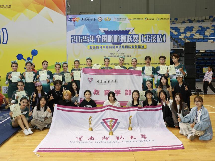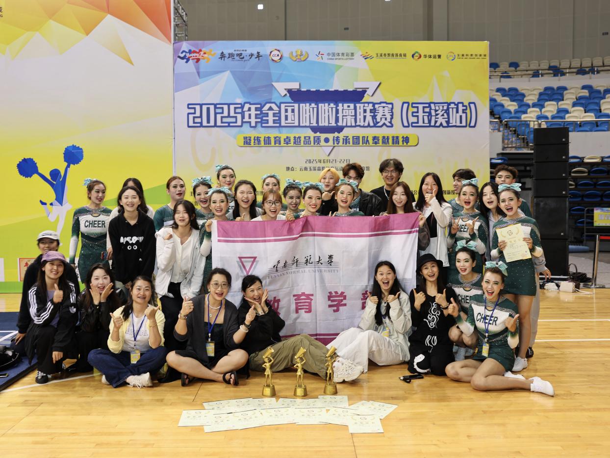 6月21日至22日,2025年全国啦啦操联赛(玉溪站)在云南玉溪高原体育运动中心举办。赛事吸引了全国近2000名啦啦操选手参赛,涵盖幼儿园至大学及专业俱乐部全年龄段,设置花球、街舞、爵士等十余项组别。德赢官网教育学部共组织30名学生参赛,教师傅媛蕾、唐琳和高怡楠担任领队。经过激烈角逐,教育学部代表队获双人街舞自选动作-公开青年乙组第一名、集体街舞自选动作-公开青年乙组第一名、花球规定动作(2020版)1级-公开青年乙组第一名、双人花球自选动作-公开青年乙组第二名的好成绩。
