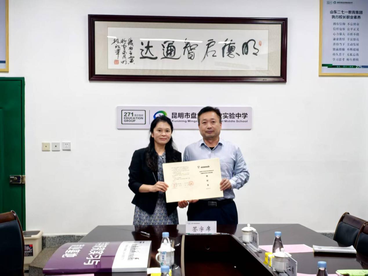 6月27日,化学化工学院与昆明市盘龙区明致实验中学举行共建教学研究实习与就业基地签约授牌仪式。