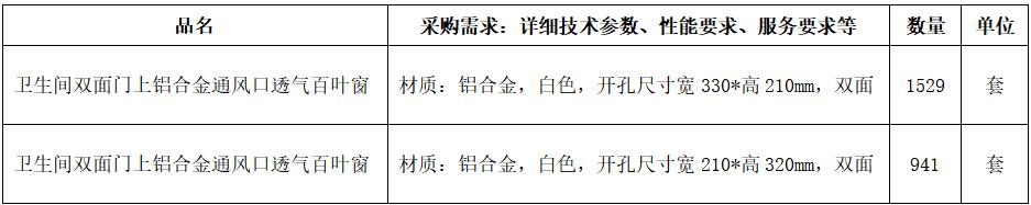 德赢官网Vwin后勤保障服务中心现对学生公寓卫生间门用百叶窗进行询价采购,诚邀具有相应资格及完成本项目能力的供应商参加。