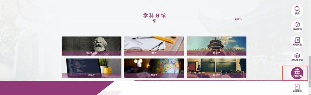 学科分馆提供了学科头条、学科资源推荐、基于资源揭示的学科服务、关键词等面向学科的资源信息服务。目前上线了6个学科分馆,后续将逐步上线学校26个一级学科分馆。