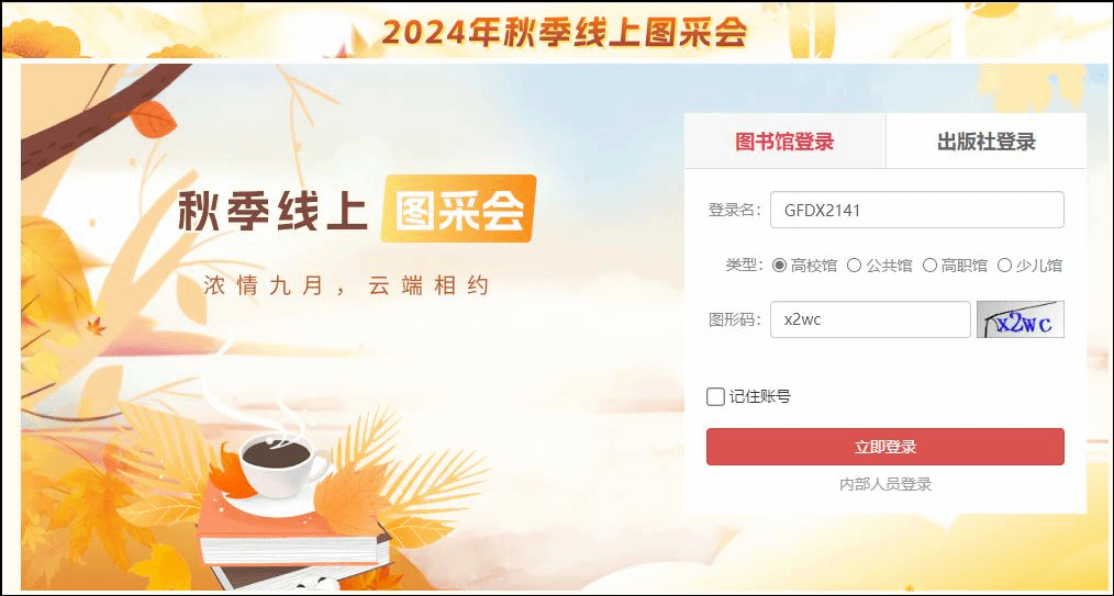 选择【图书馆登录】→输入【用户名】→选择单位属性【高校馆、公共馆、高职馆、少儿馆】→输入【图形码】登录。