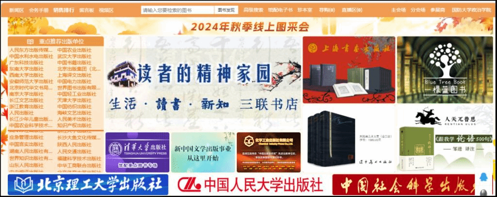 1. 主会场:主要展示重点出版社书目,直接点击出版社名称即可进入选书界面。