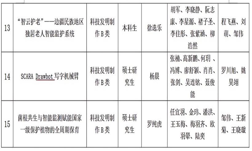 根据云南省第十三届“挑战杯”大学生课外学术科技作品竞赛相关工作安排,经自主申报、学院(学部)推荐、专家两轮评审,拟推荐《“行走的思政课”视域下西南联大爱国主义教育现状及实践创新对策分析》等15个作品参加省级竞赛。现将拟推荐项目名单公示如下: