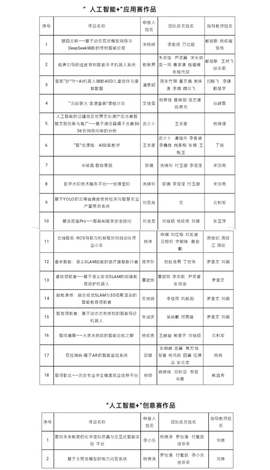 根据团中央及团省委相关工作安排指引,经研究决定,同意推荐《慧田云耕——基于动态双流模型网络与DeepSeek辅助的作物智能诊疫》等20件作品参评第十九届“挑战杯”全国大学生课外学术科技作品竞赛“人工智能+”专项赛。