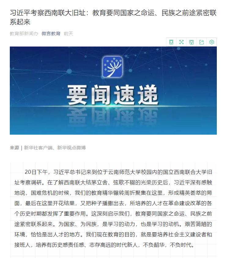 上一条:新华社 2020-01-20 习近平考察西南联大旧址 下一条:中国青年报 2019-12-30 云南师大扶贫工作队为驻村小学校举办国画展