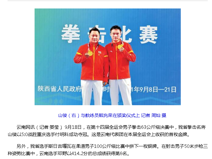 上一条:海外网 2021-09-19 全运会-拳击:男子63公斤级山俊夺冠 下一条:云南日报 2021-09-18 山俊夺得十四运云南代表团首金