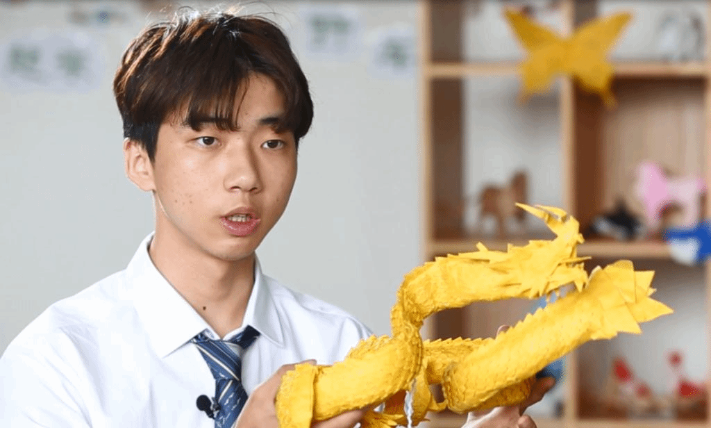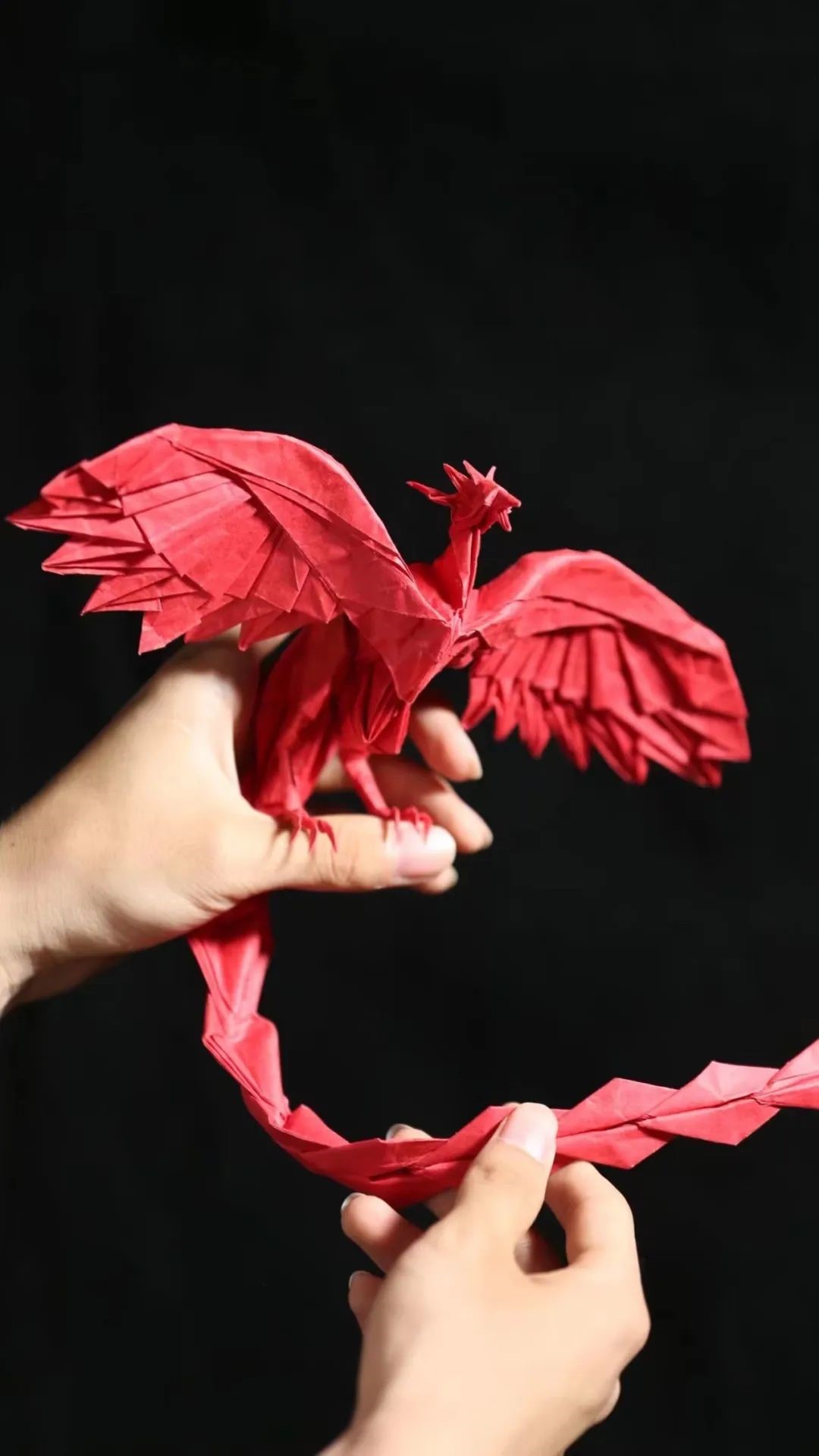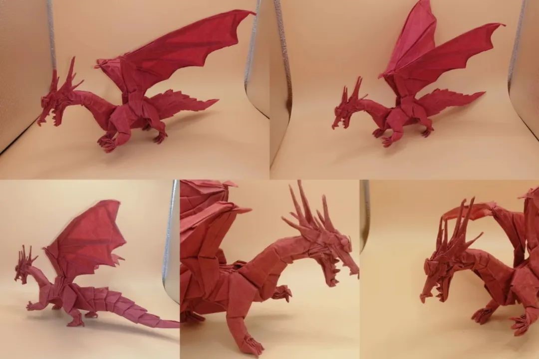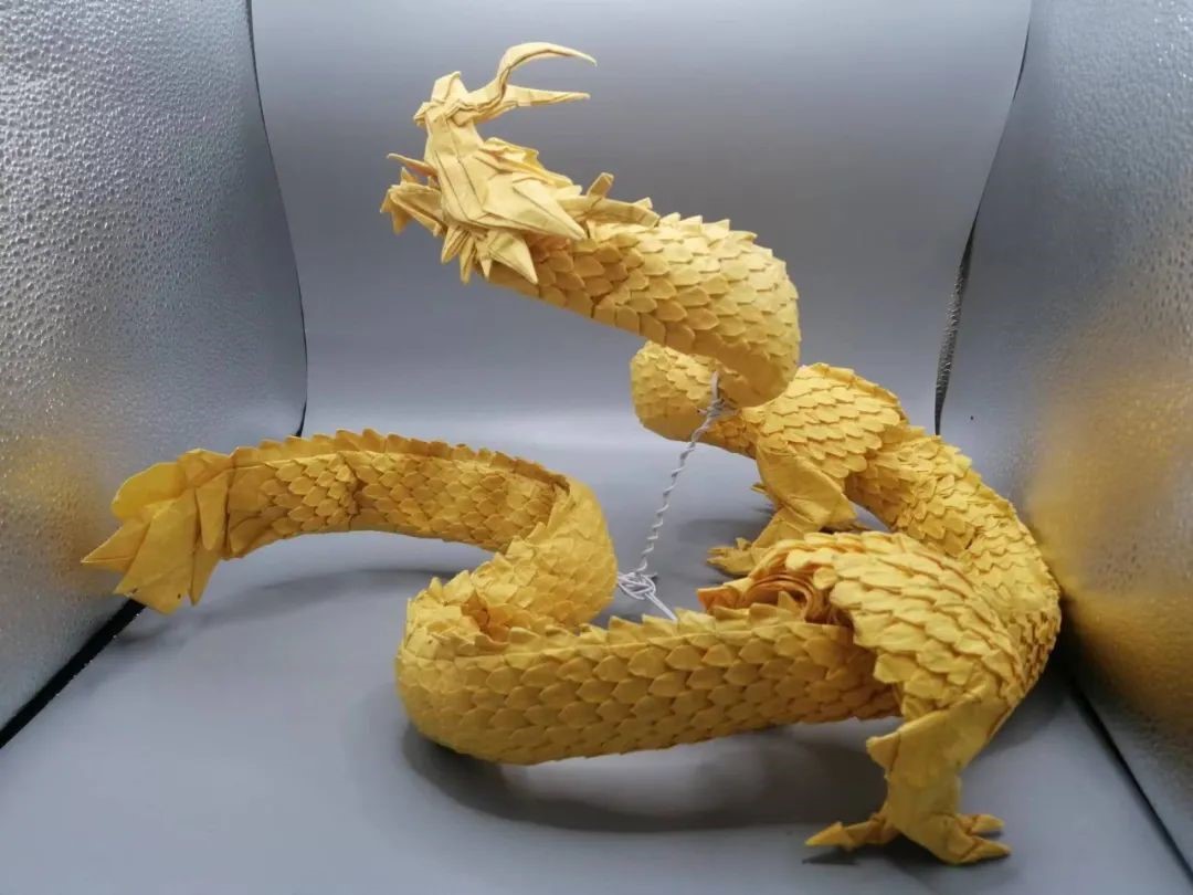 在自学了7年现代折纸后,李瑞完成了自己梦想中的龙。