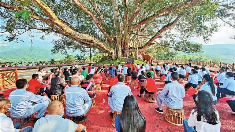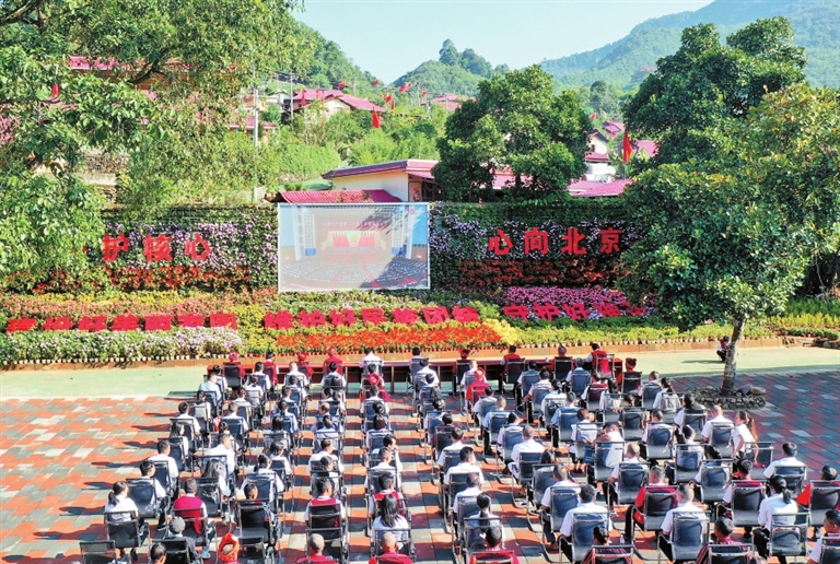 百年榕树枝繁叶茂,树下一座写有“心向总书记、心向党、心向国家”大字的建筑格外引人注目;“建设好美丽家园、维护好民族团结、守护好神圣国土”,殷殷嘱托格外振奋人心。10月16日上午10时,临沧市沧源佤族自治县班洪乡下班坝自然村,曾宣读习近平总书记重要回信的感恩纪念广场上,沧源100多名干部群众共同收看党的二十大开幕会盛况。