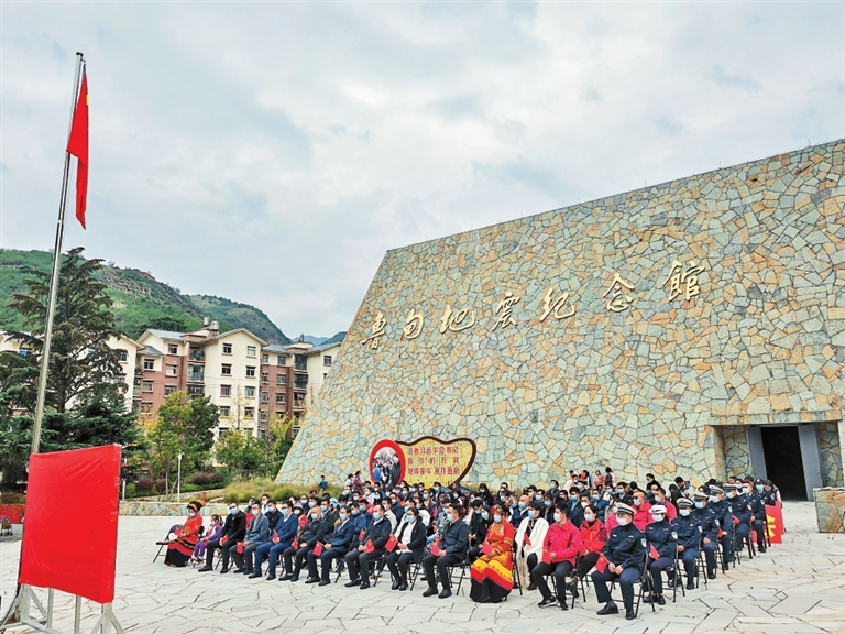 10月16日上午,昭通市鲁甸地震纪念馆广场上,来自鲁甸县龙头山镇的党员干部和各族群众聚在一起,收看党的二十大开幕会。