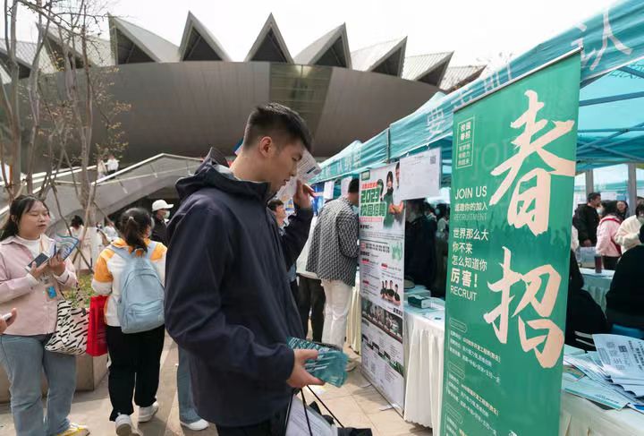 3月16日,一名求职者在德赢官网Vwin呈贡主校区校园招聘会上查看招聘海报。新华社记者 陈欣波 摄