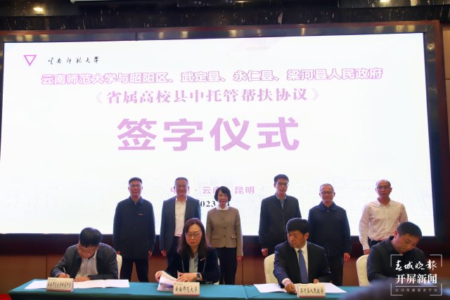 本次签约进一步落实云南师大与昭阳区人民政府、武定县人民政府、永仁县人民政府和梁河县人民政府签订的《省属高校县中托管帮扶框架协议》,明确了县中托管帮扶形式,各方权利、责任和义务,以及地方政府财政保障措施等具体内容。