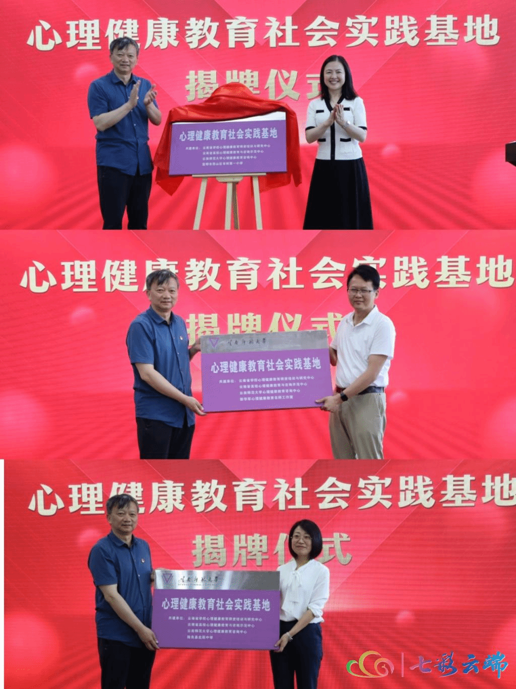 会上德赢官网Vwin心理健康教育咨询中心与昆明市西山区书林第一小学、彭华军心理健康教育名师工作室、陆良县北辰中学进行了共建心理健康教育社会实践基地的挂牌,共同开辟心理健康教育新局面,携手共建咨询服务“试验田”。