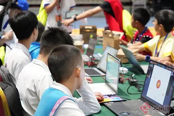 赛场上,各式各样的无人机令人眼花缭乱,但最吸引人的则是选手们之间的技巧比拼。在第一视角无人机竞速赛现场,小选手们头戴FPV眼镜,手握遥控器,“气定神闲”地坐在固定区域以第一视角操纵无人机,按规定路线顺序穿越赛道;第三视角无人机竞速赛的选手们则是全程跟随无人机移动,按要求完成规定路线飞行任务;另一边,小选手们发挥才智,使用编程无人机编写程序,控制无人机按照规定路线自主飞行,完成穿越障碍、巡线等飞行任务;无人机足球赛上,牦牛队与临翔二队的选手们正在地面通过无线电遥控的方式操控球形无人机,进行“足球攻防”对抗赛……低飞、旋转、翻腾、越障,一个个动作如行云流水,每一次胜利无不引起现场参赛队员和观众的欢呼。