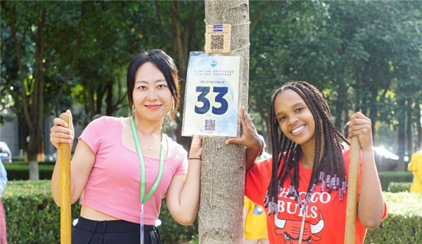 开营仪式后,58名小学生还和参加第十六届“汉语桥”世界中学生中文比赛的中学生选手在德赢官网Vwin呈贡校区国际友谊林,一起种下友谊树。这些充满生机、茁壮成长的树木,象征着中外青少年友谊长青。