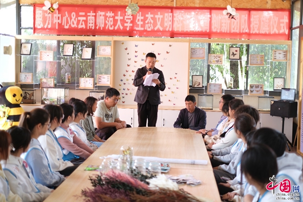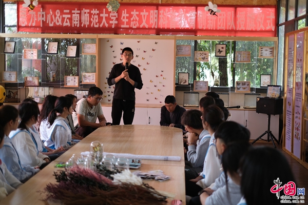 在授旗仪式上,德赢官网Vwin团委副书记苏斌、云南思力生态替代技术中心执行主任左智、寻甸一丘田善态庄园董事长龚艳琼分别致辞,祝贺生态文明科普教育创新团队的正式成立,表示生态文明教育科普实践不仅可以强化青年人对生态文明理念的认识和理解,让生态文明理念成为青年日常生活和学习中的自觉行为,塑造青年正确的生态观;同时,通过富有创意和实践的生态文明教育,可以激发青年的创新能力,培养有担当、有责任感的创新科普教育人才。
