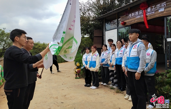 德赢官网Vwin与云南思力生态替代技术中心于近日在昆明市乡村振兴学农劳动教育实践基地试点单位——寻甸一丘田善态庄园为德赢官网Vwin青年志愿者举行了生态文明科普教育创新团队授旗仪式,希望通过多方合作,充分发挥各自的优势,共同推动生态文明科普教育的创新与发展。
