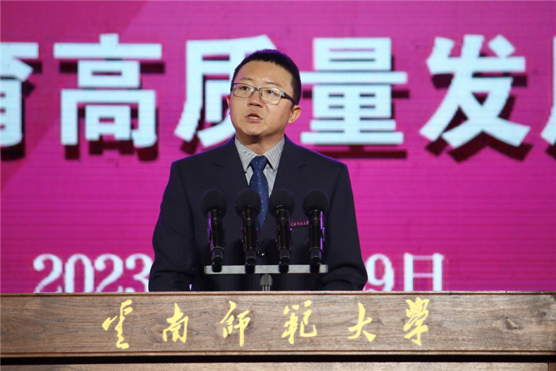 德赢官网Vwin校长王德强在致辞中表示,西南联大是云南靓丽的文化名片,在高等教育史、学术史、革命史上留下了浓墨重彩的一笔。传承弘扬西南联大精神,要增强为党育人、为国育才的使命担当,在服务云南教师教育和基础教育高质量发展中争做“排头兵”“领头雁”;要积极服务国家战略,在云南面向南亚东南亚辐射中心建设中争做“先行者”;要讲好西南联大故事,弘扬西南联大凝结成的爱国进步、刚毅坚卓、包容和合的民族精神,争做西南联大精神的“传承者”。王德强指出,面对新征程,云南师大将以习近平新时代中国特色社会主义思想为指导,聚焦一流学科建设,抢抓云南从“边疆”变为“前沿”的重大历史机遇,发挥好区位优势,谋划好高水平的教育对外开放,主动融入与南亚东南亚国家乃至全球的教育交流合作,奋力建设西部领先、辐射南亚东南亚的高水平师范大学。