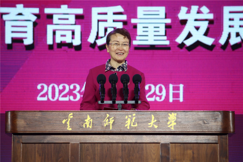李玛琳对西南联大在昆建校暨云南师大建校85周年教师教育高质量发展大会召开表示祝贺,向云南师大全体师生和西南联大校友及其亲属、云南师大海内外校友致以问候。她指出,云南师大在昆办学85年来,始终秉承西南联大“刚毅坚卓”校训,弘扬西南联大爱国主义精神。坚持创新驱动发展,坚持国之所需、我之所向的责任担当,坚持国际视野和开放办学,取得了一系列瞩目的办学成绩。她希望云南师大全体师生以建校85周年为新起点,主动服务和融入国家战略,积极对接和聚焦云南“3815”战略,围绕国家、省委省政府对教育高质量发展部署,敢于抢抓机遇、善于主动作为,为云南经济社会发展再续担当,为教育强国建设谱写华章,为中国式现代化建设贡献云师力量。