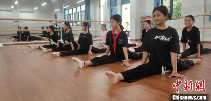 图为学生们在练习舞蹈基本功。金水河国门小学 供图