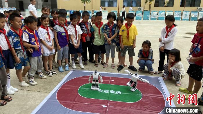 图为金水河国门小学学生们观摩机器人科技展示。金水河国门小学 供图