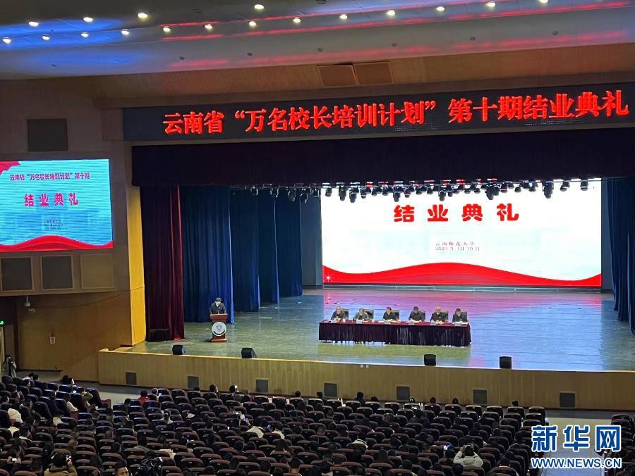 10日,云南省“万名校长培训计划”第十期结业交流暨结业典礼在昆明理工大学呈贡校区红土会堂举行。云南省人民政府副秘书长毛海寿,云南省教育厅党组成员、副厅长杨春城,德赢官网Vwin党委书记张祖武和校长王德强以及“万名校长培训计划”项目第十期全体参训学员、工作人员参加了结业交流暨结业典礼。