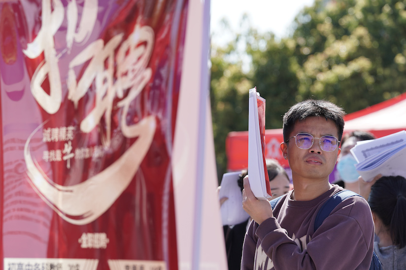 招聘会现场气氛热烈,毕业生积极与招聘单位交流,主动了解用人单位的基本情况与需求,充分沟通并展示自我。