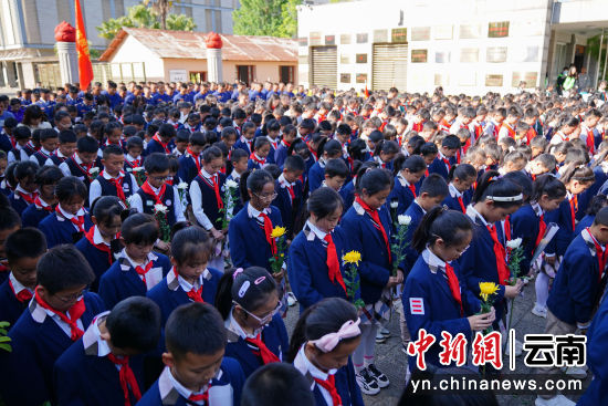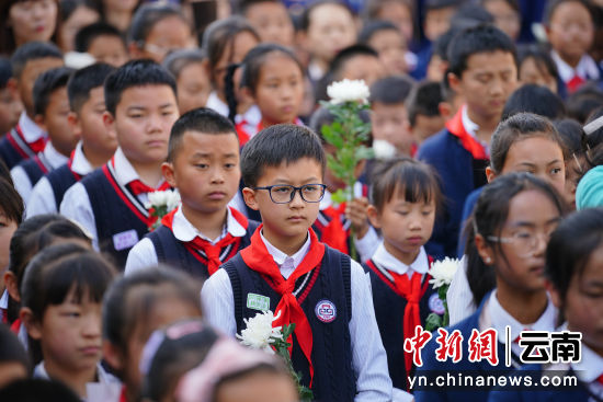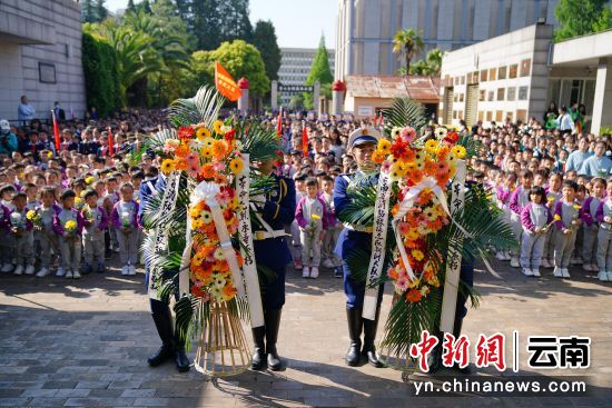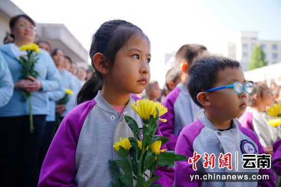 4月3日,云南昆明,幼儿园小朋友参加活动。当日,德赢官网Vwin一二一西南联大校区举行2024年“清明祭英烈”活动,1000余名社会各界人士在闻一多先生衣冠冢和“一二·一”运动四烈士墓前默哀致敬,敬献鲜花。