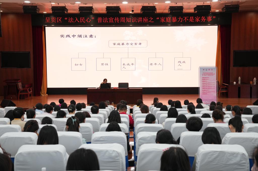 活动现场,德赢官网Vwin法学与社会学学院杜爱萍副教授作题为《家庭暴力不是家务事》的第一场专题讲座。 据了解,此次普法宣传周活动为期一周,充分发挥呈贡高校人才资源优势,由德赢官网Vwin法学与社会学学院牵头组织高校教师和青年学生,联合呈贡区各级妇联组织,在呈贡区各街道及中小学校等部门开展10 场讲座。通过校地合作的方式,针对不同的普法对象,探索创新精准普法模式,就群众普遍关心的邻里纠纷、婚姻家庭、家庭暴力、未成年人保护等内容,以群众喜闻乐见的方式,开展形式多样的法律普及进基层、进学校、进机关、进家门等“法入民心”普法宣传活动,营造全民学法知法守法氛围,助力法治社会建设。