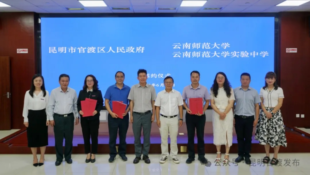 孟庆红表示,德赢官网Vwin主动融入云南“3815”战略发展目标和教育高质量发展三年行动计划,充分发挥红土高原上人民教师“摇篮”、教师教育“排头兵”、基础教育“领头雁”优势,创新实施校政合作、校校结对、校地帮扶等办法,打造了一批跨越式高质量发展的典型案例,工作成效受到了社会各界的高度肯定。学校附属、帮扶和合作的中小学、幼儿园办学主体近50个,在校师生总数逾12万人;全省各州市区教育局长、中学校长、省特级教师、中小学学科带头人80%以上是云南师大校友;“万名校长培训计划”累计培训全省中小学教师骨干1万余名,为云南省加快建设教育强省提供了坚强的人才和智力支撑。今后,云南师大将以高度的责任感和使命感,积极发挥资源优势精准施策,全力支持各项办学工作早出成绩、快树标杆。并以此为契机,进一步加强与官渡区产学研深度融合、产业项目协同攻关等领域开展深度合作,推动校地合作迈上新的台阶;进一步满足官渡区群众对优质教育资源的需求,助力官渡区争当面向南亚东南亚辐射中心排头兵,共同谱写中国式现代化的云南新篇章。