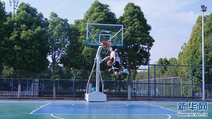 万磊表演高难度扣篮(6月14日摄)。新华网 徐华陵 摄