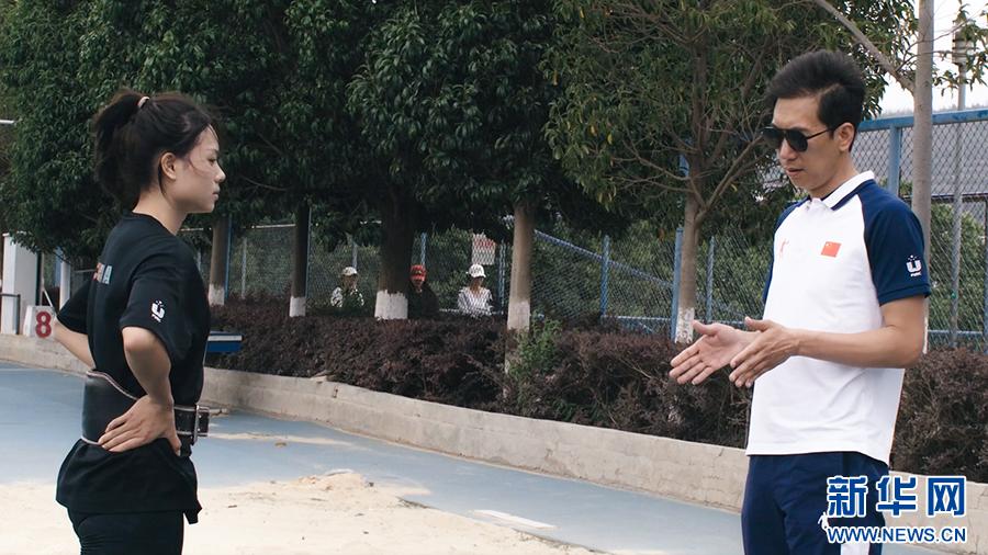 教练杨帆(右)正在为江南(左)纠正训练动作(资料图)。新华网发(德赢官网Vwin 供图)