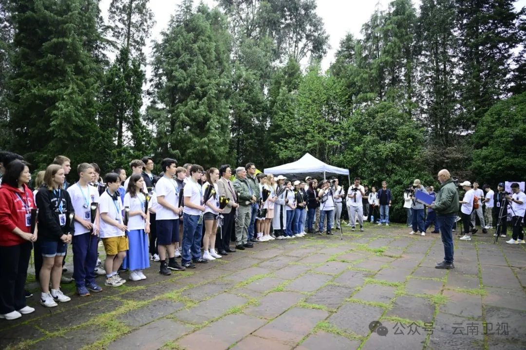 6月28日清晨,昆明郊野公园笼罩在蒙蒙细雨之中。在位于公园高处的驼峰飞行纪念碑前,“汉语桥——‘飞虎队’主题美国青少年来华夏令营”的70名营员拾级而上,一起缅怀83年前的“驼峰飞行”。