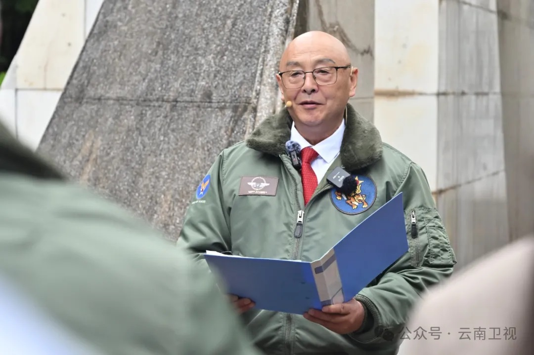 高德敏主持献花仪式,讲述“驼峰飞行”的故事