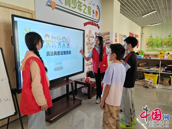 7月20日,志愿者通过分享典型的未成年人溺水案例、展示预防溺水相关图片和视频的方式,围绕容易发生溺水的地方、常见的预防溺水警示牌、溺水事故的危害、发生溺水的原因、溺水的急救知识以及游泳安全技能,向小朋友们讲授了预防溺水的相关知识。活动结束后,小朋友们纷纷表示这样的活动有利于他们树立“预防溺水,生命至上”的观念,知悉不慎落水后有效的自救方法,以及遇到他人溺水时正确的施救方法。午休后,志愿者带领小朋友们一起进行了“木头人”“丢手绢”的益智游戏和书法练习活动。游戏结束后,志愿者组织小朋友们观看了有关未成年人犯罪的模拟法庭,完整展示了校园欺凌的庭审流程,让他们深刻体会到法庭的庄严和公正,从而增强对法律的敬畏之心。