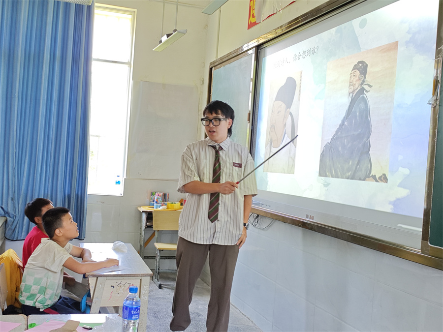 此外,志愿者们还向孩子们分享张桂梅、黄文秀和俞鸿儒的故事,科普中国历史,组织孩子们观看红色影片,开展红色教育,点燃孩子们的爱国之情。