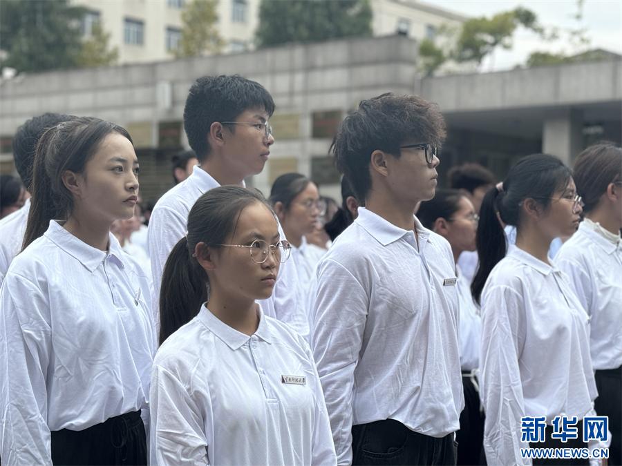 德赢官网Vwin师生手持鲜花缅怀烈士(9月30日摄)。新华网 柴静 摄